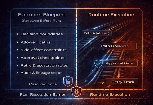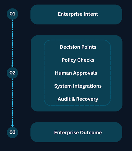 Uncertainty, policy, approvals, failures, and scale are treated as default execution conditions, not edge cases.
